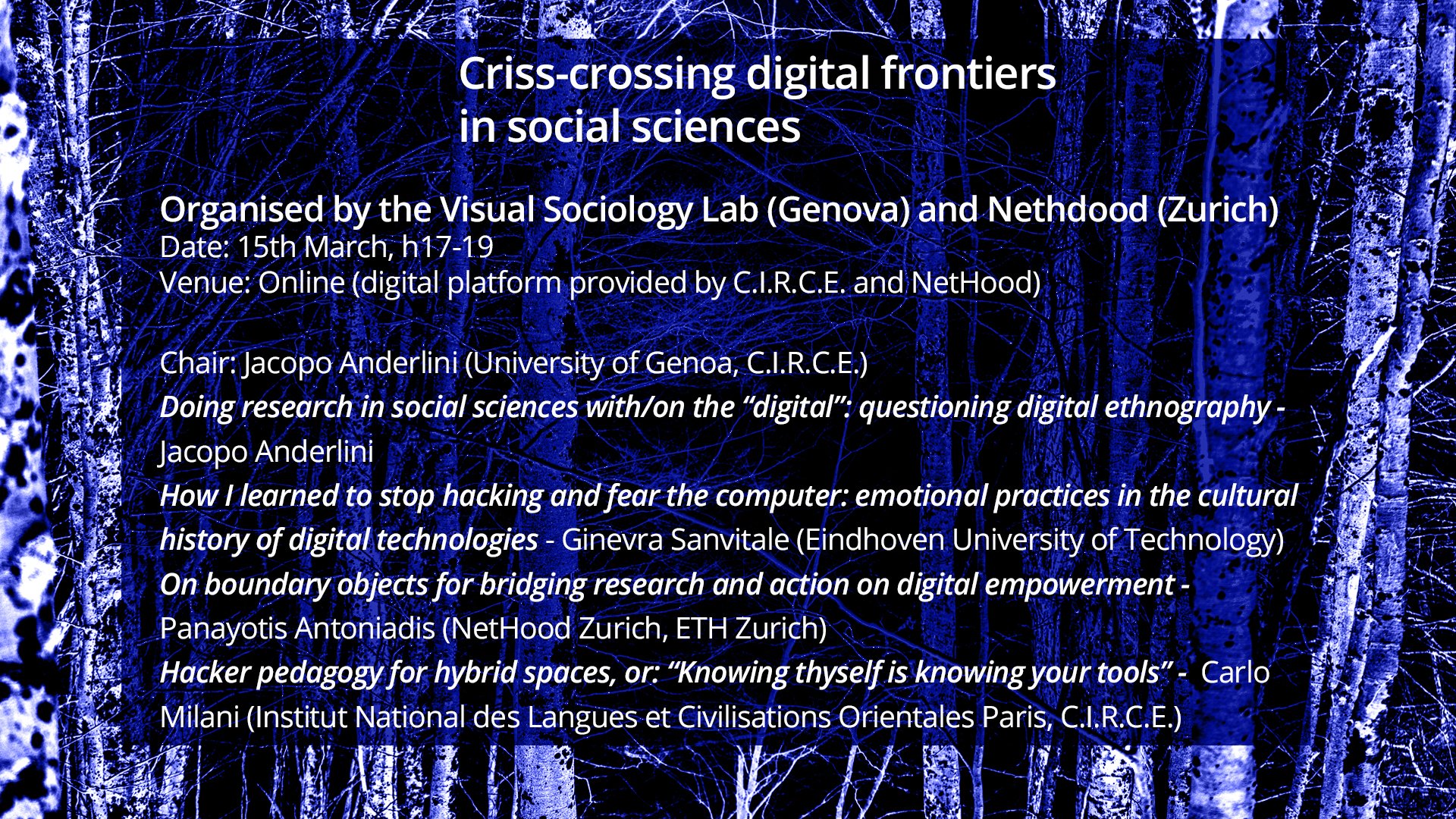 Organised by the Visual Sociology Lab (Genova) and NetHood (Zurich)